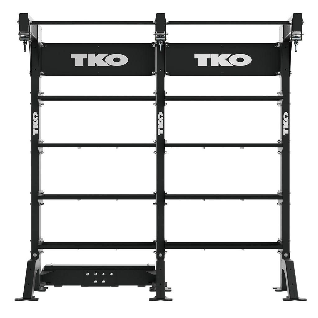 The Free Standing Suspension Bay allows for complete customization of TKO's all new Defiant modular Suspension and Storage bay system are a great addition to any training facility.  Gives any environment the ability to store med balls, wall balls, stability balls, kettlebells, dumbbells, mats and more...  With a full line of unique shelfing, you have the freedom to choose based on your needs.  The Suspension capability is perfect for functional training areas, with a unique 3-Way Swivel to hold a variety of suspension trainers or heavy bags.